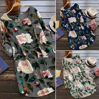 Abiti delle donne di Estate delle Donne di Modo Dell'annata Stampa Floreale del Mini Vestito Del Partito di Estate Camicia Lunga del Vestito Più Il Formato